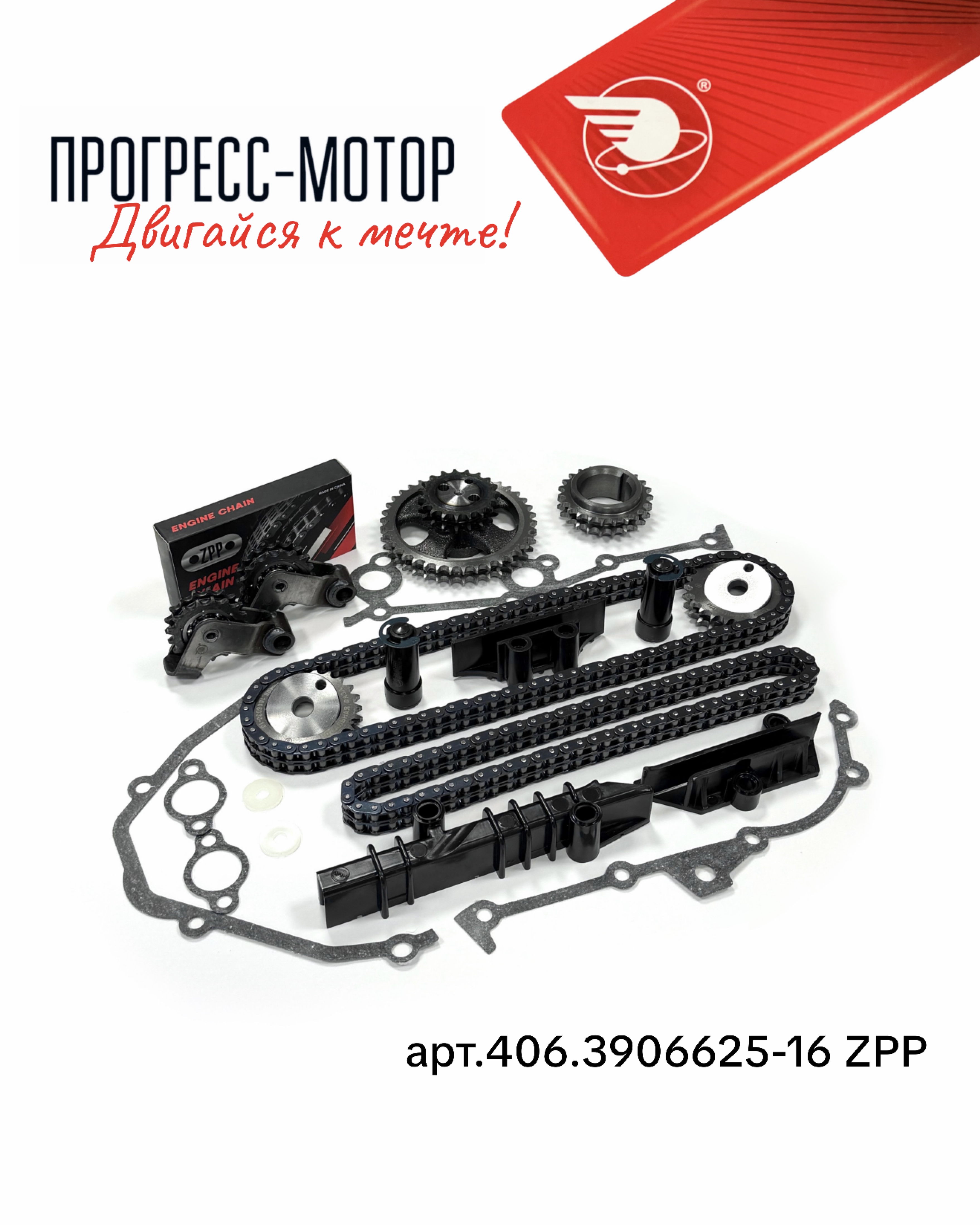 — двухрядная втулочно-роликовая цепь привода ГРМ ZPP (ТМ ООО Прогресс-Мотор) с диаметром втулки 6,35 мм — 1 комплект (72,92 звена), упакована в индивидуальную упаковку ZPP